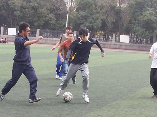 2013年10月26日上午十点半,8797威尼斯老品牌研究生足球比赛在校足球场上如火如荼的开始了。随着裁判员一声哨响,比赛正式开始,研一队与研二队展开了激烈的角逐。上半场一开始,两队的球员立刻开始了猛烈的进攻,双方的球员们都毫不示弱,展现出各自细腻的脚法、默契的配合、缜密的队形部署,很快使比赛进入白热化阶段。