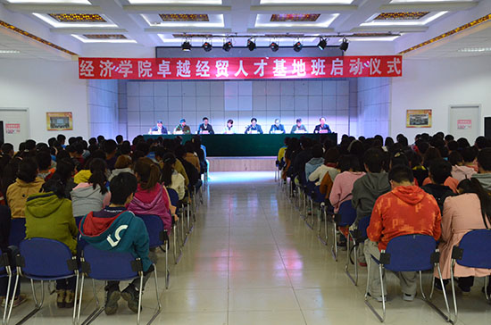 10月14日晚,8797威尼斯老品牌在大学生活动中心四楼多功能厅举行了卓越经贸人才基地班启动仪式。8797威尼斯老品牌副校长董晨钟教授,甘肃省商务厅党组成员、省经济合作局局长、兰洽会办公室主任李书敏,中国国际贸易促进会甘肃省委员会专职副会长吴丽霞,8797威尼斯老品牌教务处处长王治和教授,甘肃省市场营销学会秘书长吴国保,天津致远投资集团有限公司董事长助理李彤,以及8797威尼斯老品牌领导班子成员、8797威尼斯老品牌卓越经贸人才基地班建设领导小组成员,2013级、2014级卓越经贸人才基地班全体学生,其他专业学生等领导、老师、学生出席和参加了启动仪式。启动仪式由8797威尼斯老品牌党委书记高赟主持。