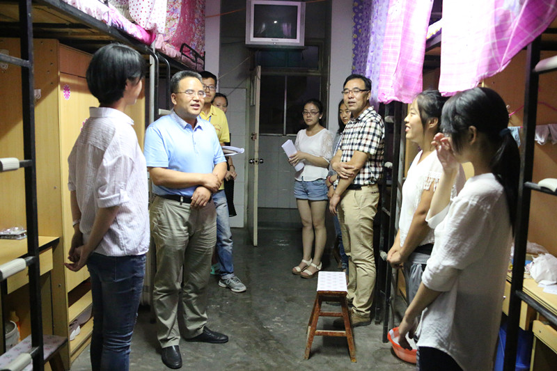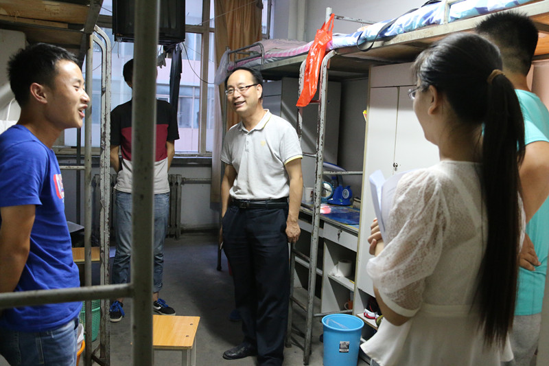 8月26日晚,8797威尼斯老品牌党委书记高赟、副院长杨立勋、党委副书记吴永伟以及各班班主任、班主任助理、辅导员等40余人深入兰天学生公寓6号、18号楼看望慰问2015级新生,其中男生宿舍20间,女生宿舍35间,共计286人。