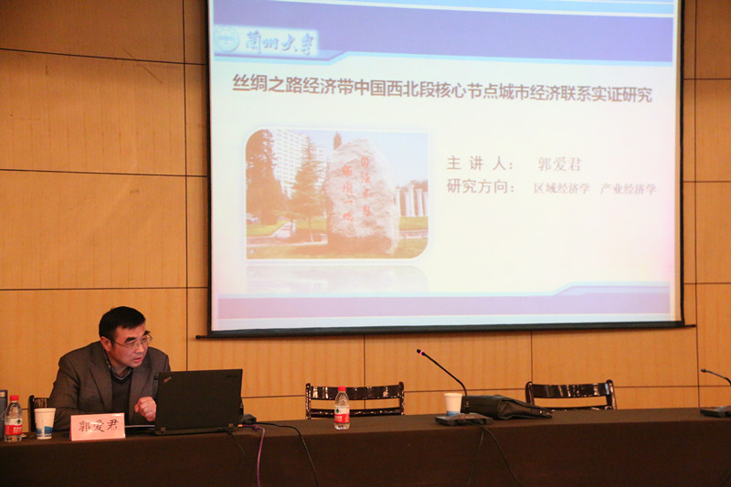 报告会上,郭爱君教授从该课题的“研究背景、城市中心职能指数、节点城市可通达性分析、结论建议”四个方面进行了详细讲解。报告深入浅出,论及“一带一路”建设的认识时,郭教授说一带一路可以打破行政壁垒,让市场机制充分发挥作用。郭教授还指出“城市群会为新常态下经济发展提供促进作用。”郭教授以诙谐幽默的语言、通俗易懂的讲授方式、独特的观察视角和敏锐的判断能力感染了台下的所有听众,让同学们受益匪浅。报告会后,郭爱君教授对同学们的提问进行了详细解答。杨立勋院长对郭教授的报告表示衷心感谢,并建议现场师生对时事新闻要有学术敏锐性