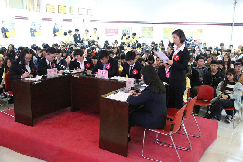 本次大赛共分为选手自我介绍、无领导小组讨论、物价评估与市场营销、经济金融行业情景模拟四个环节。自我介绍环节,八名选手做了充分的自我介绍并表达了就业意向。无领导小组讨论环节,八名选手激烈争锋、各抒己见、求同存异。物价评估与市场营销环节,选手们对自己的模拟产品做了精彩的演讲与推销。经济金融行业情景模拟环节,房地产、公司文秘、银行、证券四场情景剧考验了选手们的随场应变能力,引发观众共同思考。四位复赛中表现优异的选手分享了自己的参赛心得,在座同学热情高涨、认真聆听,张军总经理受气氛感染发表了自己对制作简历和现场应聘等方面的感想。