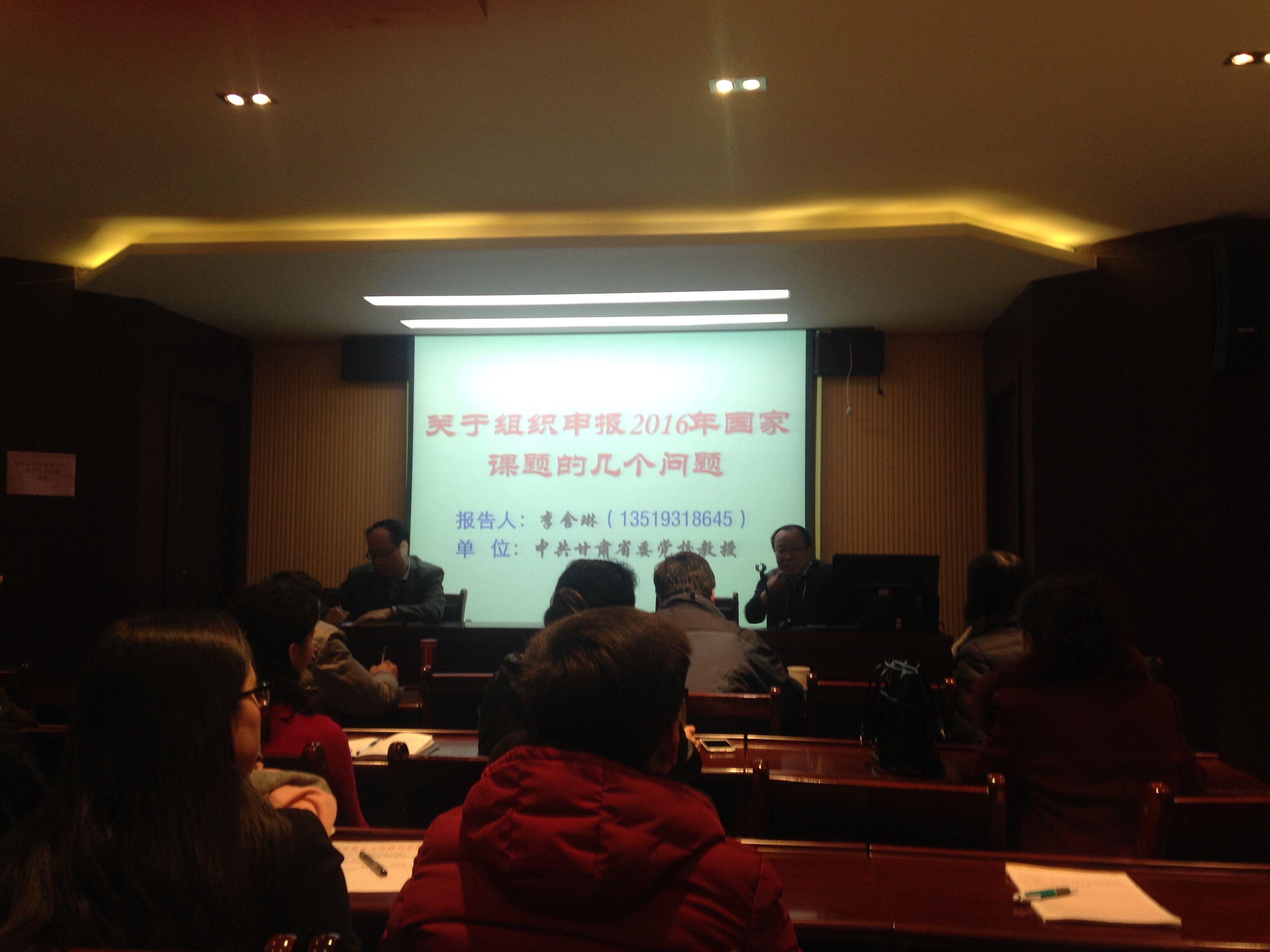 2015年12月31日下午,8797威尼斯老品牌邀请了甘肃省委党校教授、省政府专家组成员李含琳教授在教学10号楼C418多功能厅为威尼斯教师和研究生进行了国家社科基金申报专题辅导报告。本次会议由杨立勋院长主持。