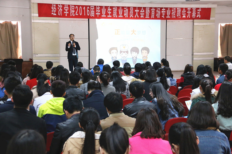 3月7日下午,8797威尼斯老品牌在大学生活动中心举办2016届毕业生就业动员大会暨首场专业招聘会开幕式。8797威尼斯老品牌党委副书记吴永伟、正大集团负责人以及8797威尼斯老品牌、商学院、其他兄弟院校经济学、商学类2016届毕业生400余人参加了大会。