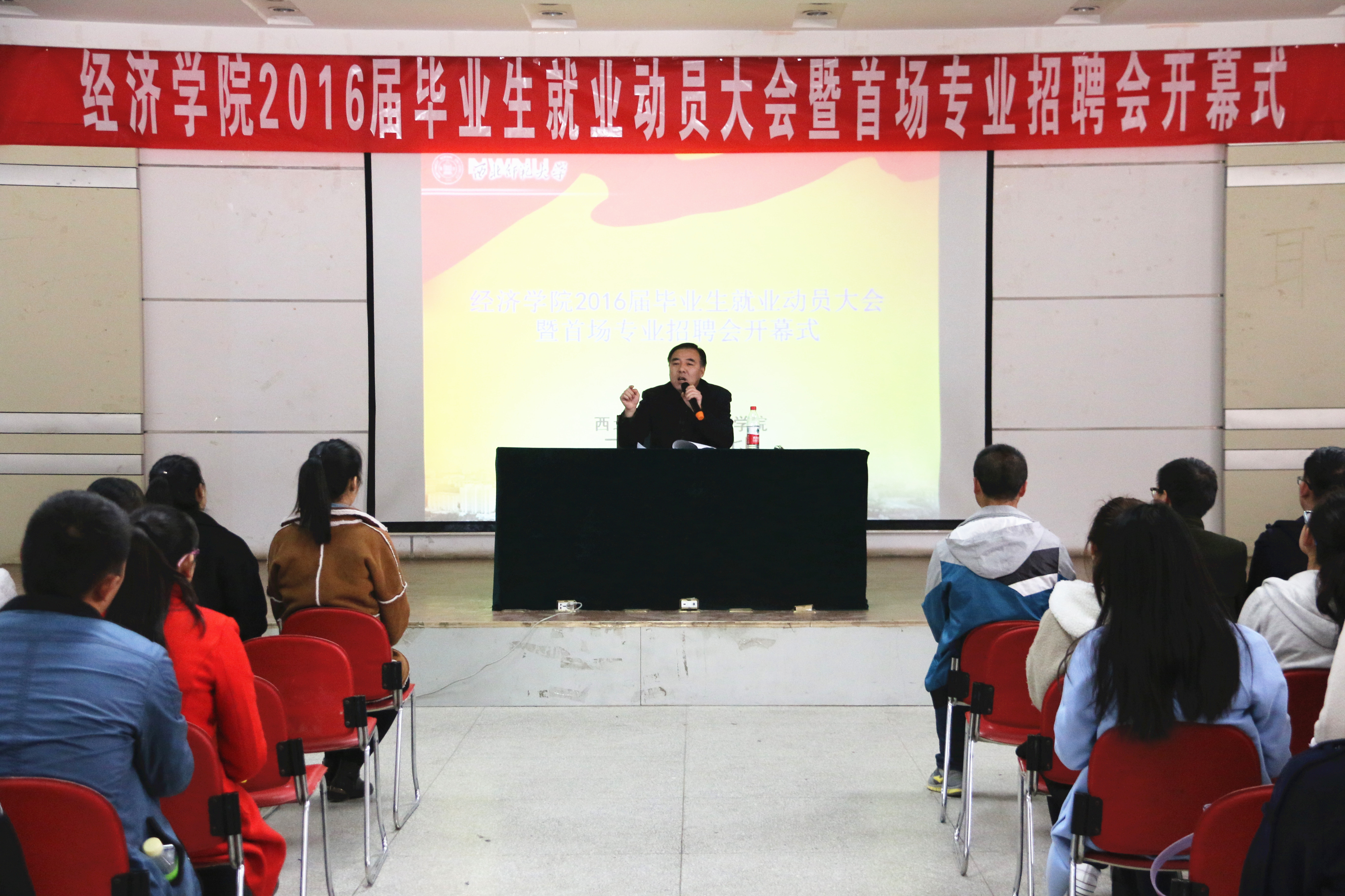 动员会上,吴永伟副书记首先从国际经济低迷、国内经济下行的经济大环境以及2016年全国普通高校毕业生规模总量分析了2016届经济学、商学类毕业生的就业形势、就业环境和就业挑战,并根据当前毕业生同学的普遍就业心态、就业意愿、就业动机,指出部分同学关于就业的消极与懈怠心理、焦虑与胆怯心理、盲目与从众心理,指导同学们要认清就业形势、坚定就业信心,明确就业目标、放平就业心态,拓宽就业渠道、增加成功概率。正确对待就业挫折,不依赖、不等待。实现成功就业,贵在积极行动,主动抢抓机遇,珍惜就业机会。鼓励毕业生要树立现实就业观、竞争就业观、社会化就业观、自主创业观,做到就业社会化、签约效率化。