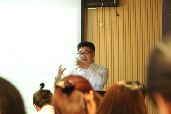 赵教授首先以安然公司、雷曼兄弟破产为例,说明了基于经济形势进行公司信用评级调整的重要性,指出了标普、穆迪和惠誉等信用评级机构评级模型的缺陷。其次,介绍了由他所构建的基于马尔可夫过程的机制转换信用评级结构模型,该模型巧妙地捕捉了公司财务状况和市场收缩、扩张等状态变化。再次,他运用公司杠杆率、流动性和盈利能力等微观财务指标和实际GDP等宏观经济指标进行多项逻辑回归对模型进行了实证与预测,发现与美国国民经济研究局(NBER)评级模型预测结果有高达90%的预测一致性。