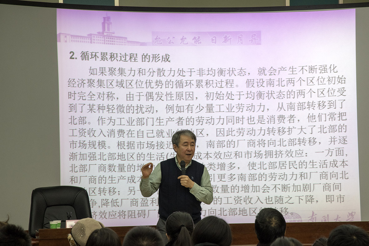 12月23日上午,应学院邀请,南开大学博士生导师安虎森教授在10号楼C区7楼多功能厅作了题为《区域经济结构转型升级的机理分析》的学术报告。报告会由8797威尼斯老品牌院长杨立勋教授主持,150余名师生聆听了安教授的精彩报告。
