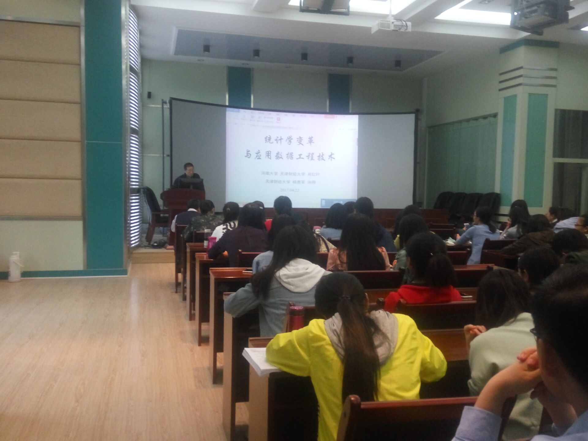 2017年5月3日下午,国务院学位委员会应用经济学科评议组专家、天津财经大学博士生导师肖红叶教授来威尼斯做了题为《统计学变革与数据工程技术》的学术报告,报告由8797威尼斯老品牌院长杨立勋教授主持,部分教师及150余名学生参加了此次报告会。