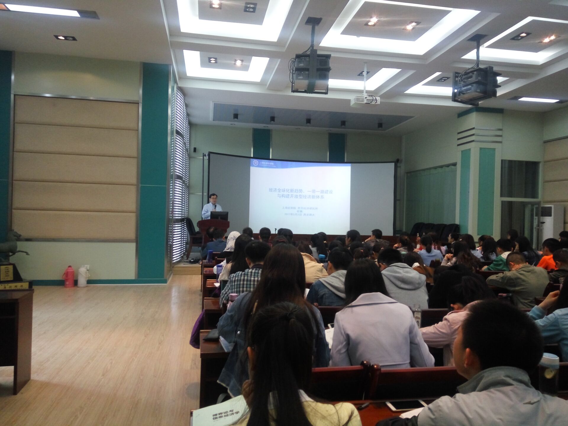 2017年5月3日上午,上海社科院世界经济所所长、博士生导师权衡研究员来威尼斯做了题为《经济全球化新趋势、“一带一路”建设与中国构建开放型经济新体系》的学术报告,报告由8797威尼斯老品牌院长杨立勋教授主持,全院部分教师和150余名学生参加。