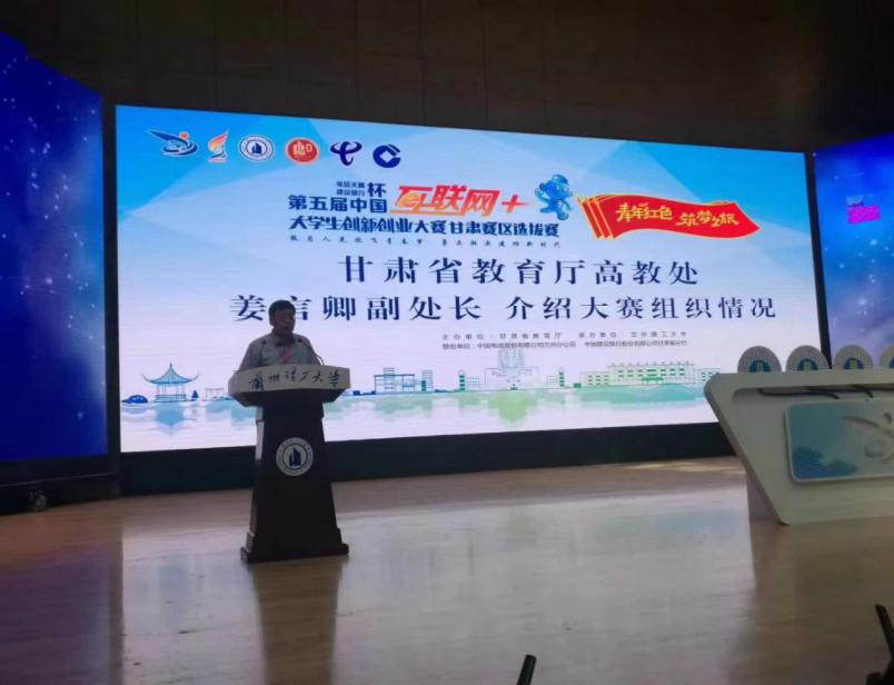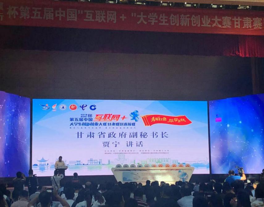 7月20日至21日,第五届中国“互联网+”大学生创新创业大赛甘肃省选拔赛在兰州理工大学体育馆举行。省政府副秘书长贾宁,省教育厅厅长王海燕,省委教育工作委员会专职副书记张晓东,省教育厅高教处副处长姜言卿,中国建设银行甘肃省分行副行长张继刚,中国电信股份有限公司兰州分公司总经理徐正桥,兰州大学、西北师范大学、西北民族大学等高校领导,企业界代表和来自省内41所高校的师生参加比赛开幕式、闭幕式。