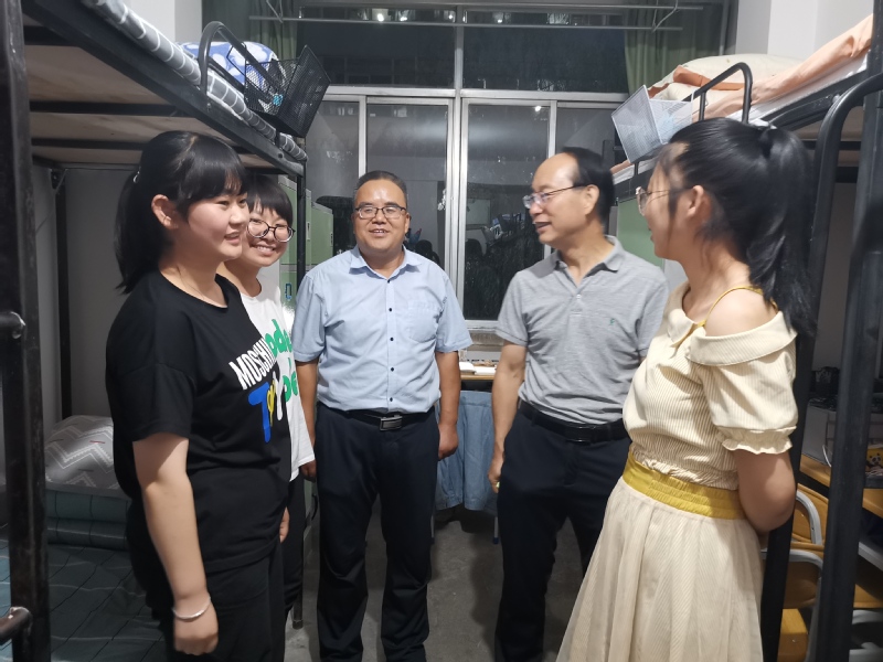 在兰天公寓,高赟书记和杨立勋院长与2019级本科生亲切交流,询问同学们的家庭情况、对学校的适应情况,强调大家要有安全防范意识、学会处理人际关系,建议新生要多去图书馆充实自己,充实内心,增长见闻。