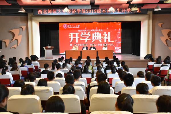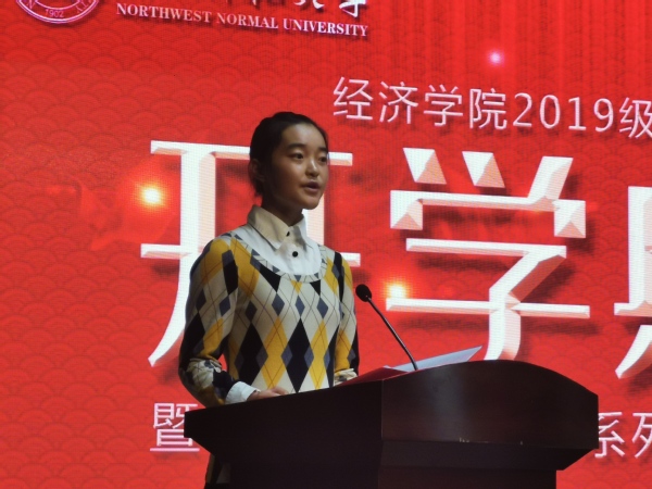 “学习经济就是学习富有,践行‘经身济世、经世济民’的经济人的价值追求和理想信念。养成良好习惯,培育高尚品质,做遵纪守法、诚实守信、健康向上、全面发展的大学生。希望同学们在大学四年时光里把握青春,奋力拼搏,认真读书,刻苦学习,努力做理想之我,唯有读书,才能感知时代的精神,唯有学习,才能实现自己的梦想。学习终究会把你带到一个更宽广的世界,给你带来更宽广的视野,把那份原来你想都不敢想的美好,悄无声息地带到你的身边。”高赟书记寄语2019级本科生。