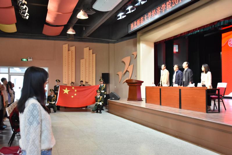 典礼开始前,全体师生肃立,升国旗,奏唱国歌。