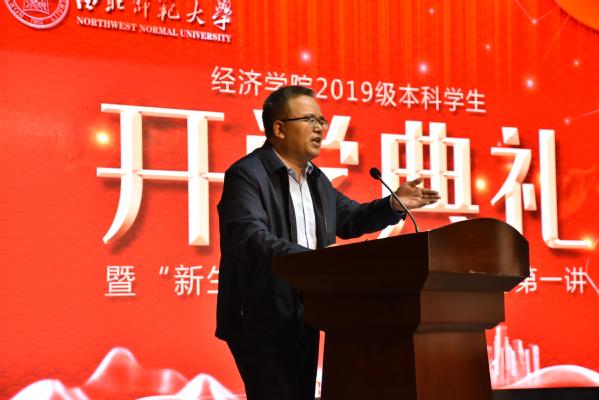 杨立勋院长首先代表学院对2019级本科新生表示欢迎。他说,你们是如此优秀和富有朝气,从你们的眼中我读出了新一代经济人的激情与自信,欢迎179名整装待发的经济青年。