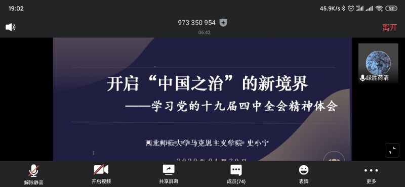 本次培训班采取自学与集中学习相结合、专题报告与观看视频相结合、线上学习培训与撰写结业论文相结合。期间,邀请马克思主义学院校内云亭青年教授史小宁博士作了《开启“中国之治”新境界—党的十九届四中全会精神解读》的专题报告,副教授侯选明博士作了《自觉涵养我们的理想信念》的专题报告;8797威尼斯老品牌党委副书记吴永伟作了《党章、党纪、党规学习解读》专题辅导报告,8797威尼斯老品牌教授冯曦明作了《中国未来10年经济发展展望》专题辅导报告,副教授李天建博士作了《世界格局、中国崛起、党的使命—基于疫情防控的视角》专题辅导报告。要求入党积极分子观看《我们走在大路上》专题片。因在疫情期间,最后要求撰写论文替代结业考试。