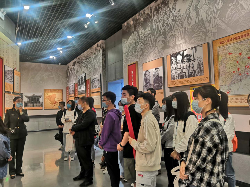 首先,同学们在纪念塔下合影留念。天虽下小雨,但仍阻挡不了各位学生党员参观的激情。随后,在讲解员的带领下,同学们参观了红军长征纪念馆,一起重温红军长征的历史,从一个展厅到另一个展厅,给我们讲述了每一张图片和每一件文物包含的悲壮故事,有飞夺泸定桥的激烈场面,也有小红军舍己救人的感人事迹,还有四渡赤水河的巧妙战术等等。同学们都仔细聆听着,认真思考着,一个个神情凝重,深深地被革命先烈的感人事迹所震撼。最后,在纪念塔下,我们重温了入党誓词,在整齐的宣誓声中,包含了同学们坚定的信念以及无限的责任感。