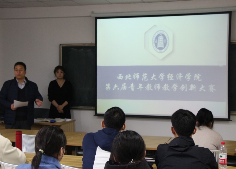 复赛分为两个环节,第一个环节三位青年教师分别进行了教学展示。龚沁宜老师展示了《金融市场学》中的资产证券化,她教态自然大方,语言亲和力强,通过生活化的实例使枯燥的定义生动容易理解。卓玛草老师展示了《中级计量经济学》中单位根及单位根所带来的问题,卓玛老师对所讲授的内容非常熟练,对理论问题层层剖析,究其根源。刘妍平老师讲授了《概率论与数理统计》中的方差,给出随机变量方差的概念及计算,方差的性质,最后做出小结。内容详实体系完整。三位青年教师充分地展示了他们在教学上的能力和成长。