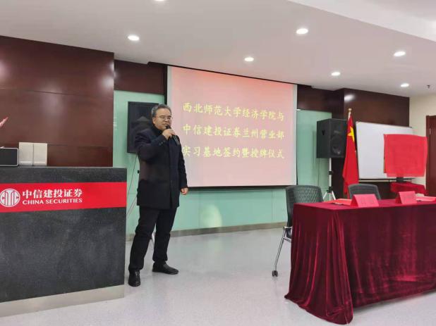 营业部总经理瞿建萍表示:“中信建投证券兰州皋兰路证券营业部作为在甘肃最早的证券营业部,切实践行公司汇聚人才、服务客户、创造价值、回馈社会的使命,主动承担起国民教育社会责任,把接收高校毕业生见习、缓解就业压力作为一项重要的任务,希望通过此次实习基地的建立充分发挥校企合作优势,将理论与实践相结合,提升大学生就业创业能力”。