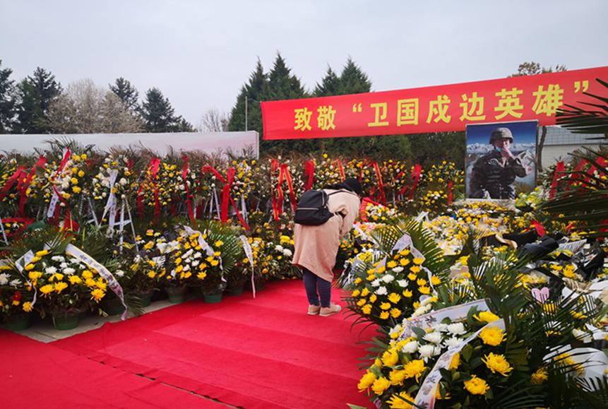 “清澈的爱,只为祖国。”这是为坚定履行“祖国山河,寸土不让”诺言而牺牲的卫国戍边英雄骨子里的精神血脉。沿着他们的精神足迹,7名党员来到“卫国戍边英雄”陈红军烈士悼念广场。环绕广场,大家不时在英雄事迹陈列展板前驻足、沉思。“面对数倍于己的来犯之敌,他们张开双臂,像一座座移动的界碑。即使重围之下也未曾后退一步,因为他们始终铭记‘祖国领土神圣不可侵犯’” 想到这里,每位党员手持鲜花迈着沉重的步伐走向纪念碑前,默哀致敬,之后依次上前向陈红军烈士敬献鲜花并三鞠躬。通过庄严的缅怀仪式,向和平年代牺牲的英烈们表达深切的怀念之情。