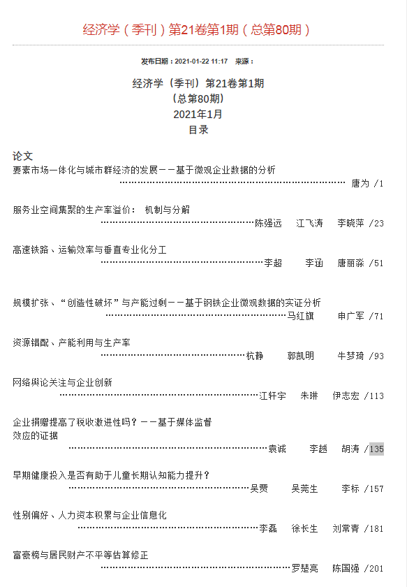 这是学院教师近年来首次在《经济学(季刊)》刊发高水平研究成果。
