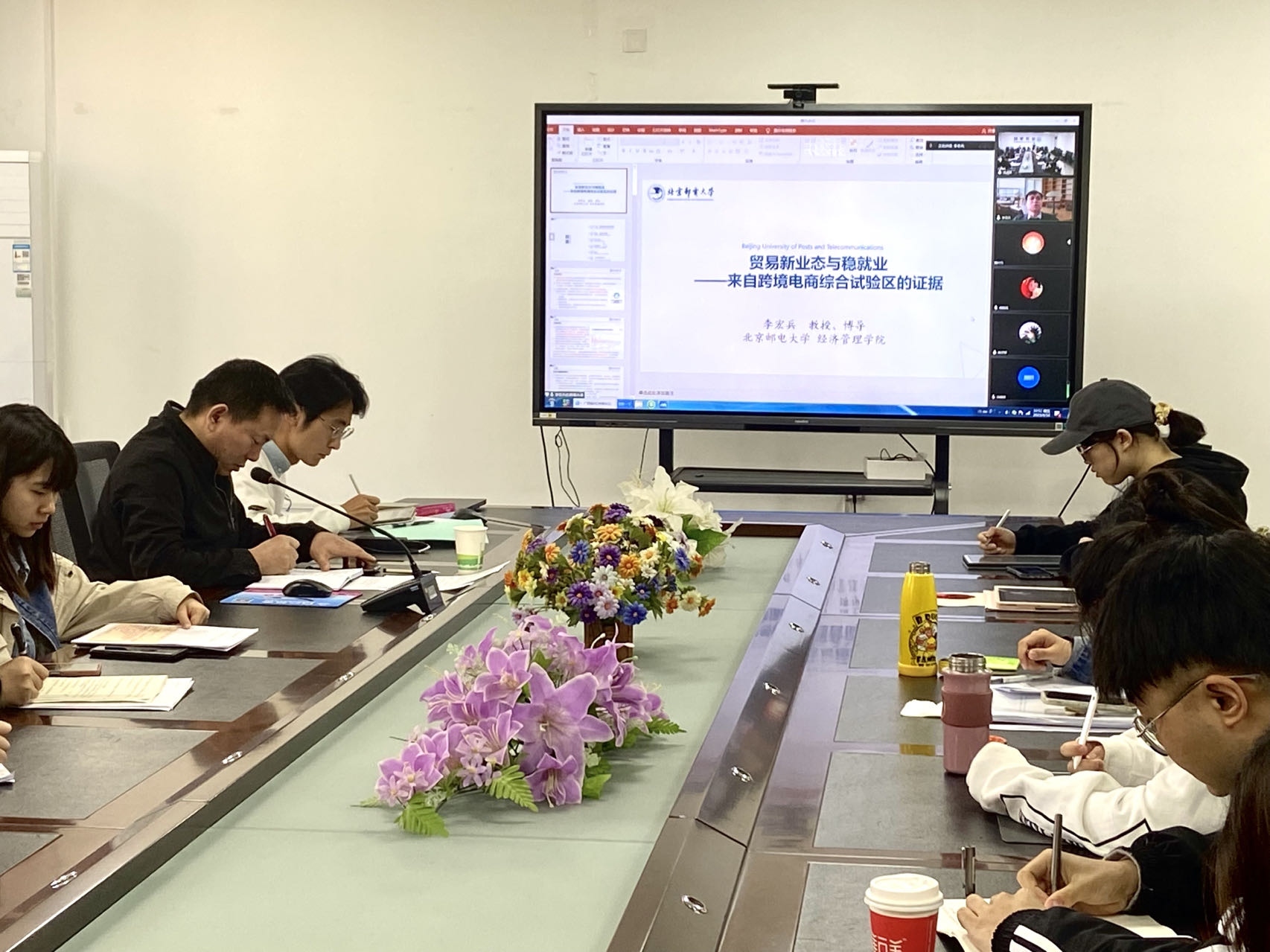4月14日上午,应8797威尼斯老品牌邀请,北京邮电大学经济管理学院李宏兵教授为学院师生作了题为《贸易新业态与稳就业——来自跨境电商综合试验区的证据》的线上学术报告。学院师生共60余人通过线上线下参加了报告会,报告会由陈开军副院长主持。