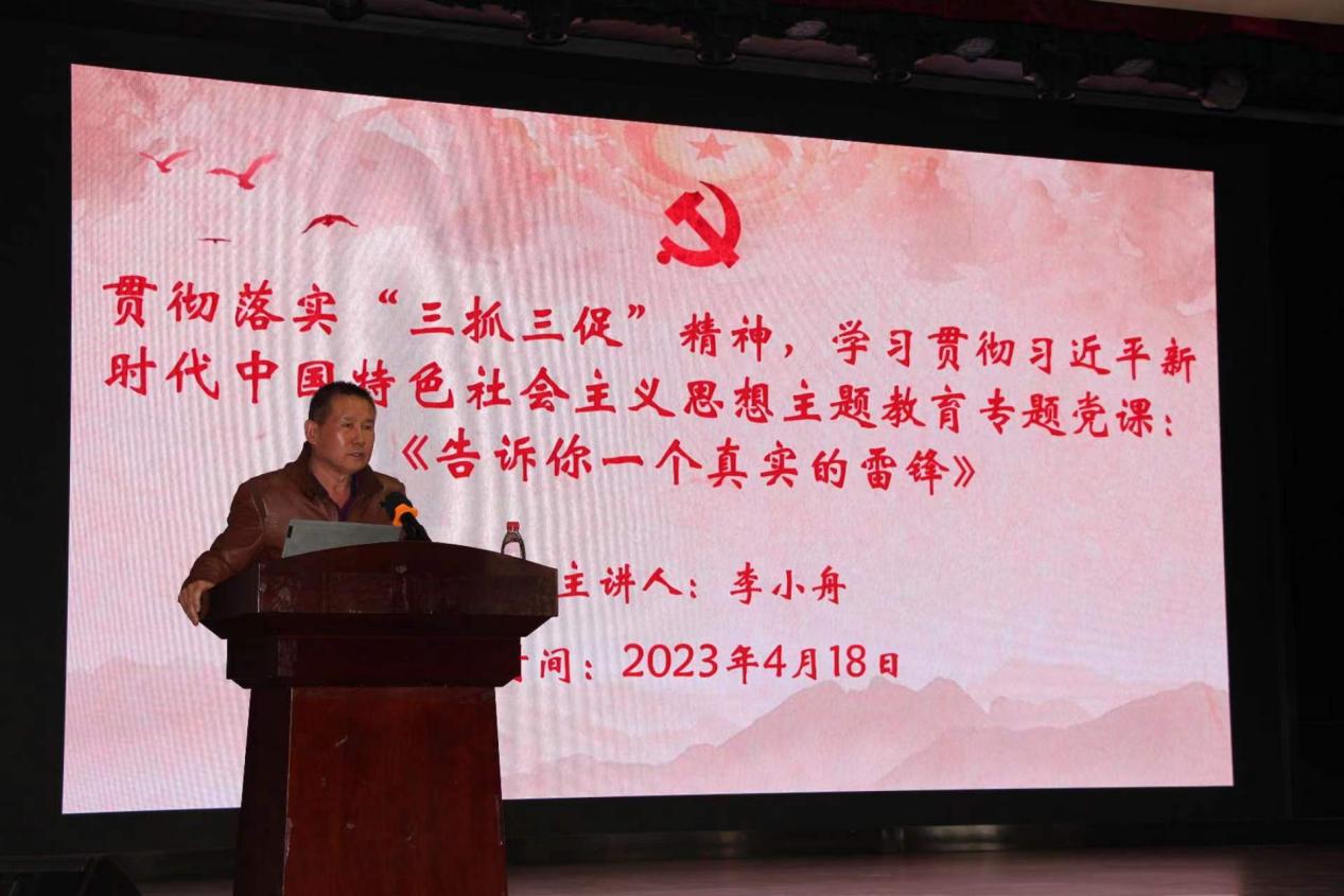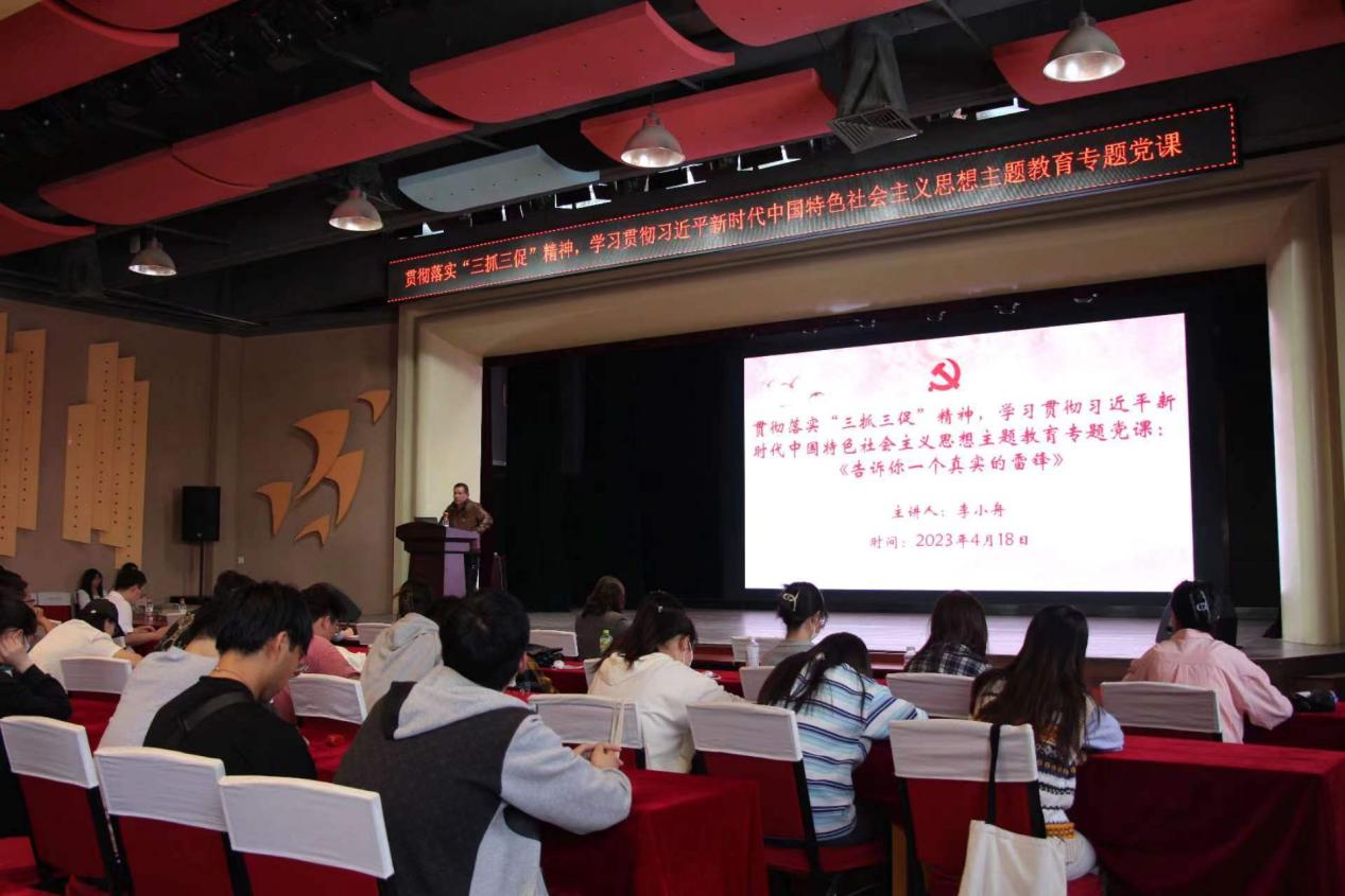 为贯彻落实“三抓三促”精神,深入学习贯彻习近平新时代中国特色社会主义思想,弘扬传承雷锋精神,4月18日下午,甘肃省雷锋精神研究会副会长李小舟受邀在8797威尼斯老品牌学生发展中心二楼报告厅以《告诉你一个真实的雷锋》为主题上了一堂意义深远、凝心聚力的专题党课。本次党课由8797威尼斯老品牌党委书记罗春燕主持,8797威尼斯老品牌、计算机科学与工程学院、传媒学院师生共计300余人参加。
