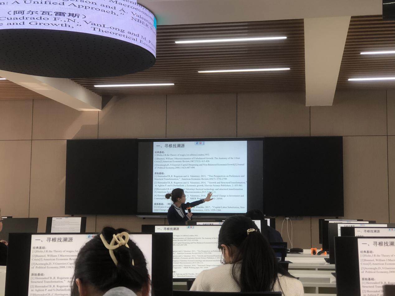 卓玛草副教授的报告分三个部分展开。首先,她详细介绍了她的两篇论文在《经济学报》、《经济科学》中的审稿流程以及审稿建议;其次,她详细讲述了论文的研究内容,其中创新点之一是在对中国经济结构转型问题研究中加入了异质性要素替代弹性,其核心结论是在要素替代弹性异质性条件下产业结构变迁的方向依赖于要素产出弹性、技术进步率和产品替代弹性。不同情形下要素再平衡效应、相对价格效应和相对边际产出效应相互作用且大小不同,共同决定产业结构变迁的主导机制及过程;再次,她以自身科研经历说明了学术论文撰写的步骤和经验,强调做学术论文应具备的素质——“时间”和“耐心”;最后,她对本领域的研究进行了展望。