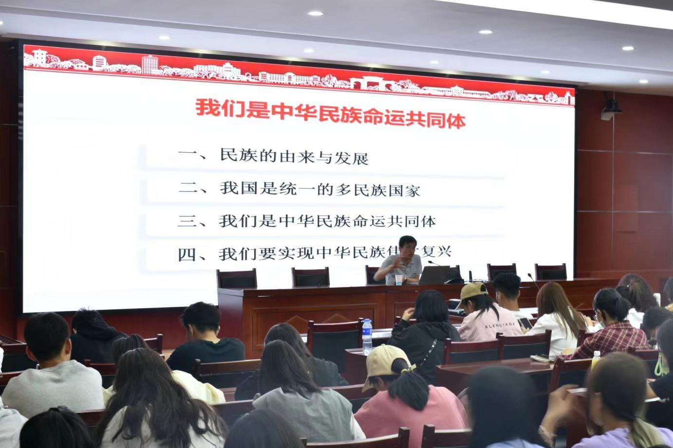 候选明老师的报告分为“民族的由来与发展”“我国是统一的多民族国家”“我们是中华民族命运共同体”“我们要实现中华民族伟大复兴”四个部分。同时提出“命运共同体”是基于对未来的期盼而做出共同的努力,并为之赋予时代精神内涵。讲座主题以党的二十大精神为指引,围绕铸牢中华民族共同体意识,指出青年的发展是促进命运共同体的关键,当代青年应勇于承担时代重任,加强民族团结,促进民族进步,维护祖国统一,共同携手创造中华新风貌。