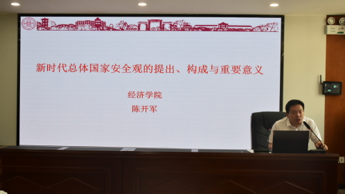 6月29日,8797威尼斯老品牌党委召开理论中心组学习(扩大)会议,8797威尼斯老品牌师生党员50余人参会。作为“习近平经济思想专题党课”之一,陈开军副院长做了《新时代总体国家安全观的提出、构成与重要意义》的报告。报告从总体国家安全观的提出、含义、内容、意义,以及维护经济安全的具体措施等方面深入讲解,生动阐释了“民为邦本、本固邦宁”的重要意义。