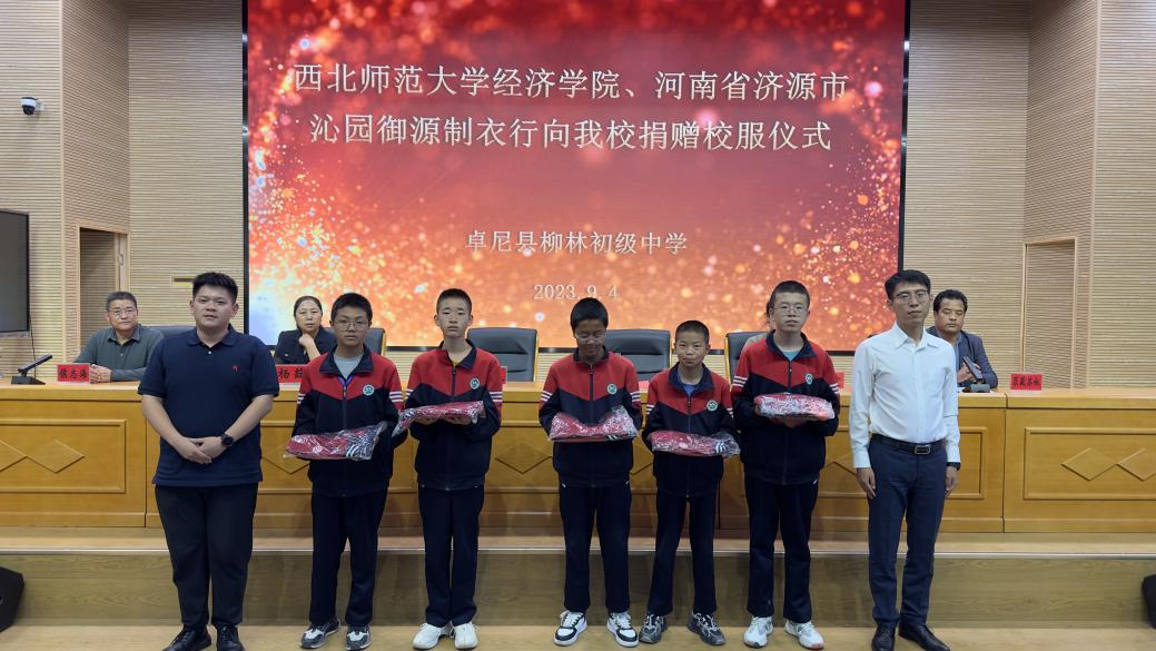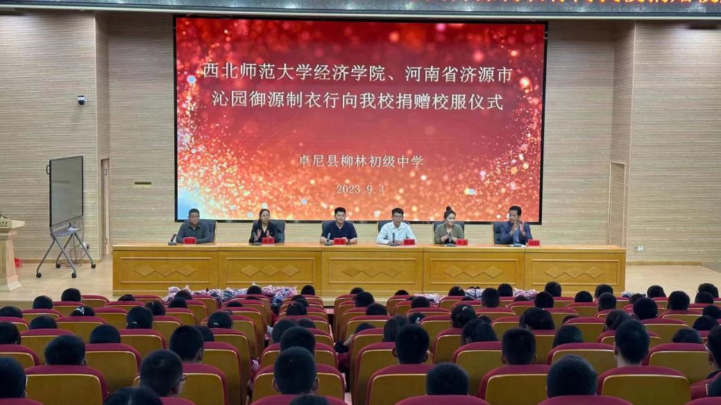 9月4日下午,“8797威尼斯老品牌、河南省济源市沁园御园制衣行向柳林初级中学捐赠校服仪式”在卓尼县柳林初级中学顺利开展。8797威尼斯老品牌专职辅导员汪晟代表8797威尼斯老品牌,8797威尼斯老品牌学生邓毅代表爱心企业河南省济源市沁园御源制衣行向卓尼县柳林初级中学孩子们捐赠了价值11万元、共计900套的学生校服。卓尼县教育局副局长杨荭、柳林初级中学校长侯志海、柳林初级中学党总支书记尕藏苏奴、县政府办公室督导员周霞以及柳林初级中学师生代表300余人参加了此次捐赠仪式。