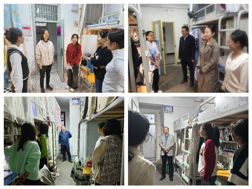 走访宿舍过程中,学院领导和老师询问了同学们假期去向、学习规划等情况,提醒同学们要注意寝室卫生及用电安全,积极营造健康整洁、安全舒适的生活环境;叮嘱同学们切实提高安全防范意识,增强自我保护能力,在生活上遇到任何问题,要及时与老师联系沟通。