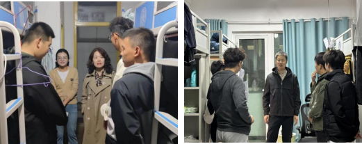 双节临近尾声,为做好全院学生节后返校相关工作,核实学生返校情况,了解学生学习生活状况和思想动态,10月6日晚,学院领导带领导师、班主任和辅导员共同走访全院学生宿舍,倾听学生心声与实际困难,为同学们送去关怀和嘱托。