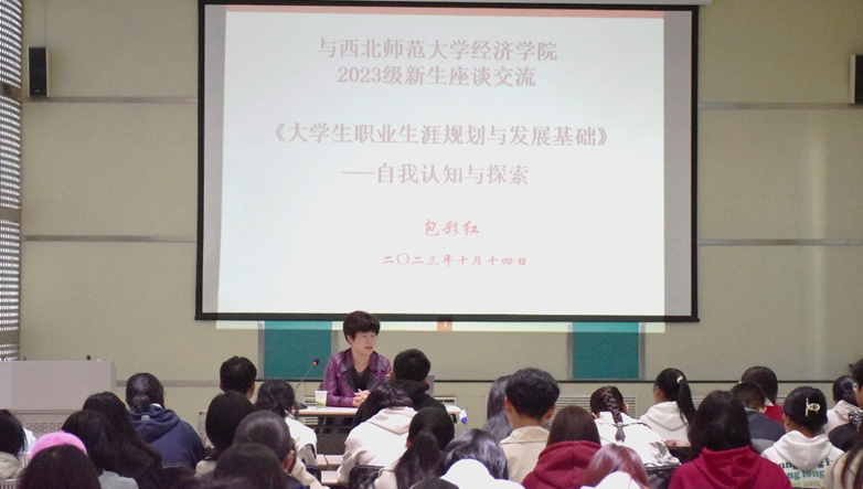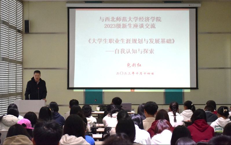 为了使学院2023级新生更好地了解所学专业、学习重点和就业前景,进一步做好成长规划,全面提升学生的专业认知度和综合素养。2023年10月14日早上9点,学院邀请8797威尼斯老品牌杰出校友包彩红老师为8797威尼斯老品牌2023级本科新生做了题为《自我认知与探索》职业生涯规划报告。讲座由学院院长聂正彦教授主持。