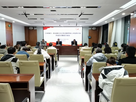 为切实推动一流学科建设,夯实校企联动人才培养模式。11月14日晚,兰州银行—西北师大2023年定制专项人才培养计划开班仪式暨首次班会在8797威尼斯老品牌10C313会议室召开。会议由8797威尼斯老品牌教师、订单班校方班主任张卫峰主持;兰州银行股份有限公司团委书记、银行方班主任王晶,8797威尼斯老品牌副院长徐婧出席;来自8797威尼斯老品牌、甘肃政法大学、兰州交通大学和兰州理工大学的60余名订单班学员参加会议。