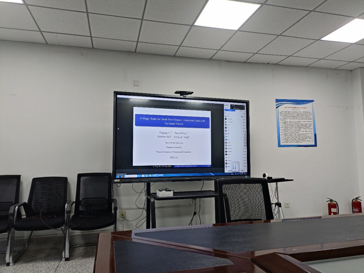 李老师首先介绍了当前小微企业面临的融资难、融资贵问题,认为造成这一问题的原因众多,其中银企信息不对称、交易成本高是重要原因;其次,他阐述了数字经济和金融科技发展在解决上述问题中的作用,并采用“银税互动”项目进行了说明,即税务局会将小微企业是否按时纳税等财税信息通过网络推送给银行,银行通过这些信息评估中小企业资信状况,并据此发放无抵押担保贷款;再次,他采用浙江省小微企业数据,建立