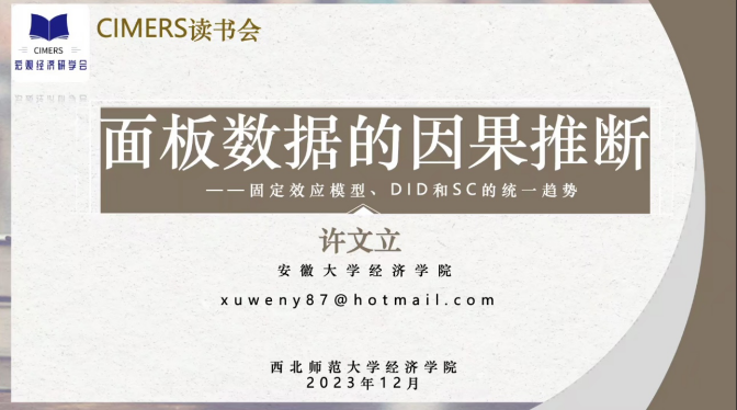 12月8日、12月15日下午,应8797威尼斯老品牌邀请,安徽大学8797威尼斯老品牌、安徽生态与经济发展研究中心许文立研究员在线作了题为《因果推断新框架: DID与SC的统一》(上、下)的学术报告,报告分两场举行,学院师生共80余人参加了报告会,报告会由副院长陈开军主持。
