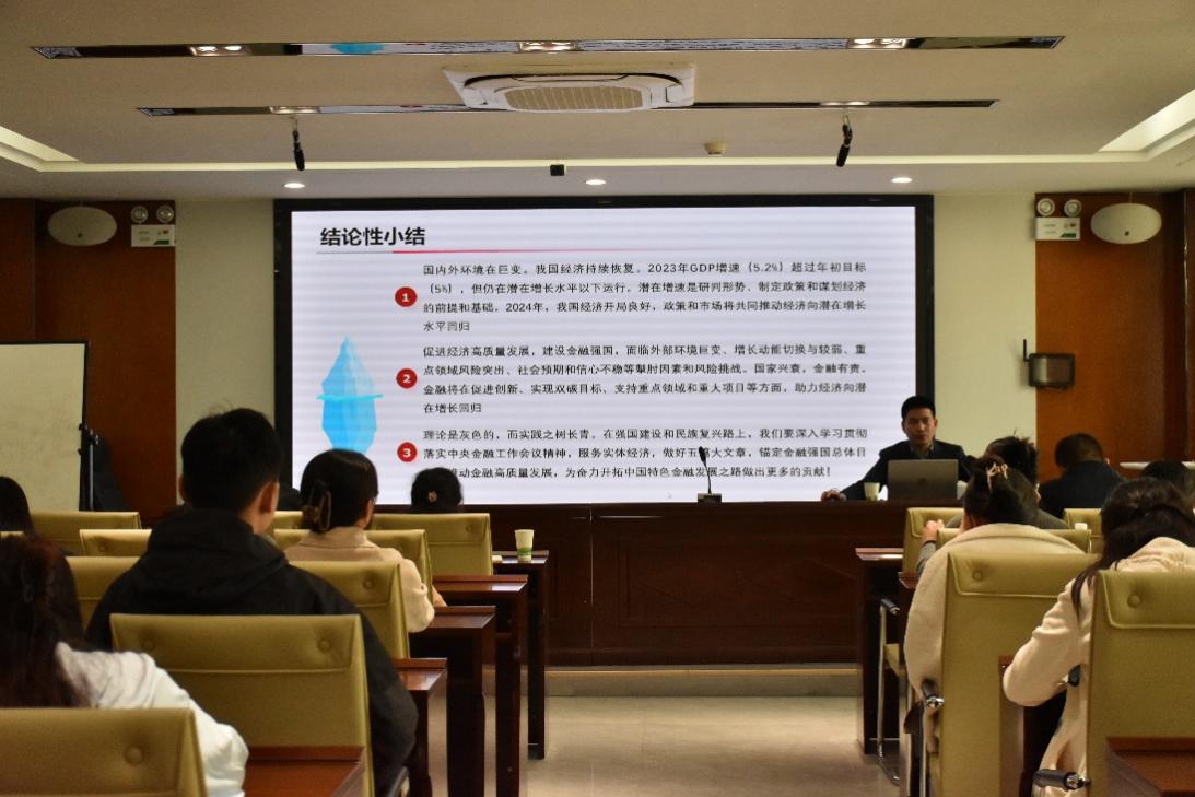 接着,他介绍了第六次中央金融工作会议的五大“新亮点”,一是党对金融工作重视程度空前提升;二是首次提出“加快建设金融强国”;三是提出“中国特色金融发展之路”,总结“八个坚持”;四是加快构建中国特色的现代金融体系;五是将会议讲话定性为习近平经济思想的重要组成部分。