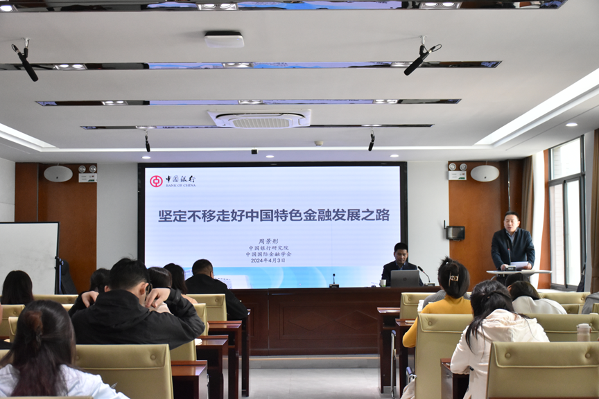 4月3日下午,中国银行研究院副院长周景彤研究员应邀致在致公楼C区313多功能会议室为学院师生作了题为《坚定不移走好中国特色金融发展之路》的学术报告,学院师生100余人参加报告会,本次报告会由副院长陈开军主持。