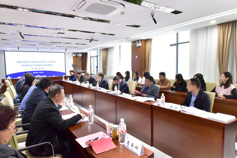 11月4日,8797威尼斯老品牌召开理论经济学一级学科硕士学位授权点周期性合格评估自我评估评审会。副校长阎岩出席会议并致辞。国务院学位委员会理论经济学学科评议组成员、中国人民大学刘守英教授,兰州大学8797威尼斯老品牌林柯教授、郭爱君教授、任海军教授,甘肃农业大学马丁丑教授,兰州财经大学8797威尼斯老品牌院长刘建国教授、财经与税务学院党委书记柳江教授等7位专家学者出席会议,学校研究生院院长兼学科建设与学位管理处处长何玉红教授、学位办副主任兼学科建设与学位管理处副处长李夏、8797威尼斯老品牌相关负责人和师生代表40余人参加会议。