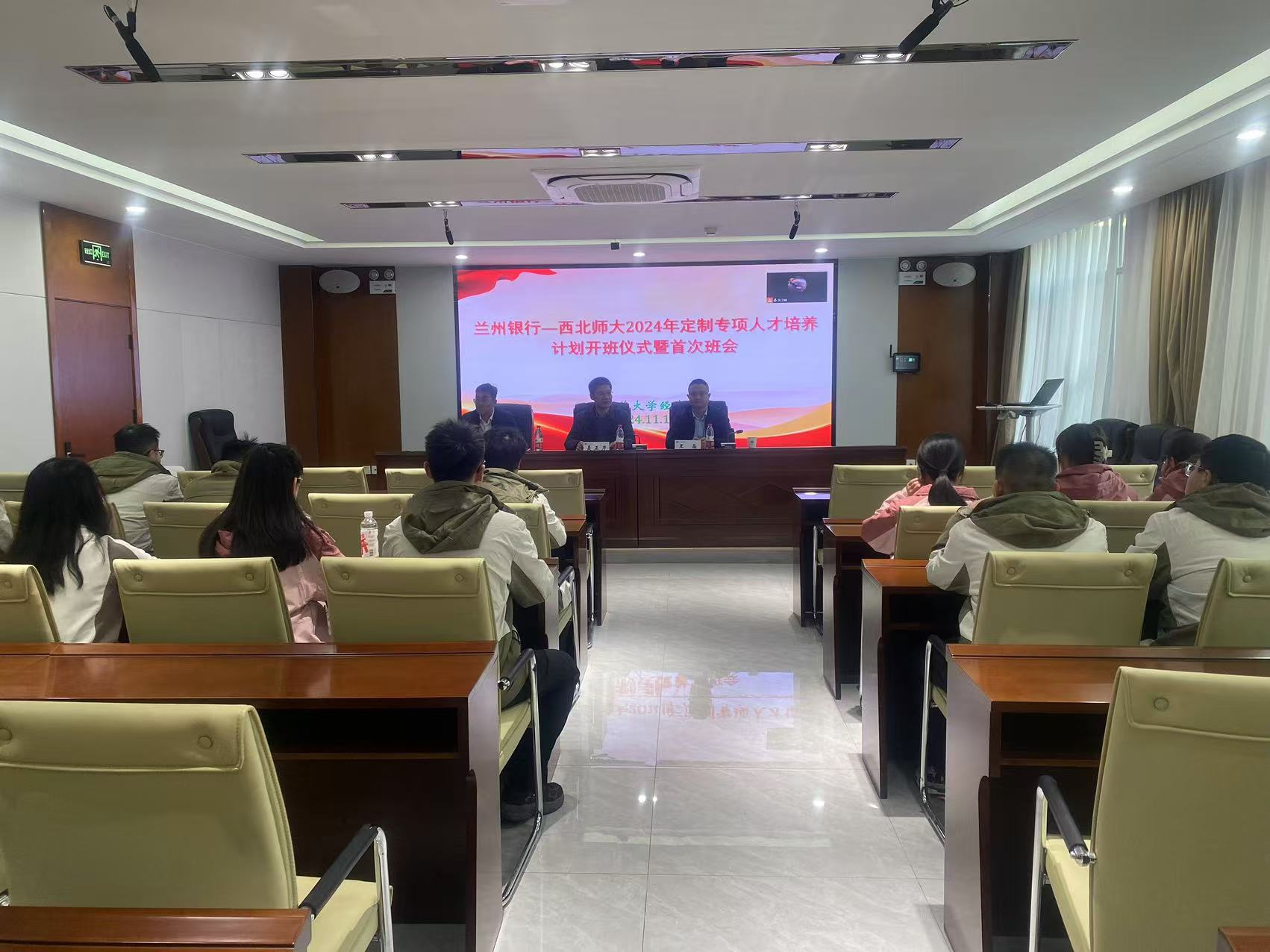 为切实推动学生高质量就业,夯实校企联动人才培养模式,助力一流学科建设。11月13日晚,兰州银行—西北师大2024年定制专项人才培养计划开班仪式暨首次班会在8797威尼斯老品牌致公楼C区3楼313会议室召开(以下简称“订单班”)。会议由8797威尼斯老品牌教师、订单班校方班主任张卫峰主持,兰州银行股份有限公司团委书记、银行方班主任王晶,8797威尼斯老品牌院长聂正彦出席,来自8797威尼斯老品牌、兰州交通大学和兰州理工大学的20余名学员参加会议。
