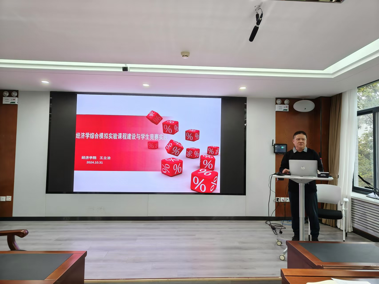 王立治老师分享了经济学沙盘模拟实验从课程建设到竞赛的发展历程。他指出,2016年学院在省内高校首开经济学沙盘模拟实验课程,该课程将理论与实践紧密结合,通过模拟真实的经济环境,让学生在实践中学习和掌握经济学知识。依托该课程,学院先后主办校级经济学沙盘模拟大赛四届。他指导的学生连续获得全国高校经济决策虚仿实验大赛一、二、三等奖等多项奖励。