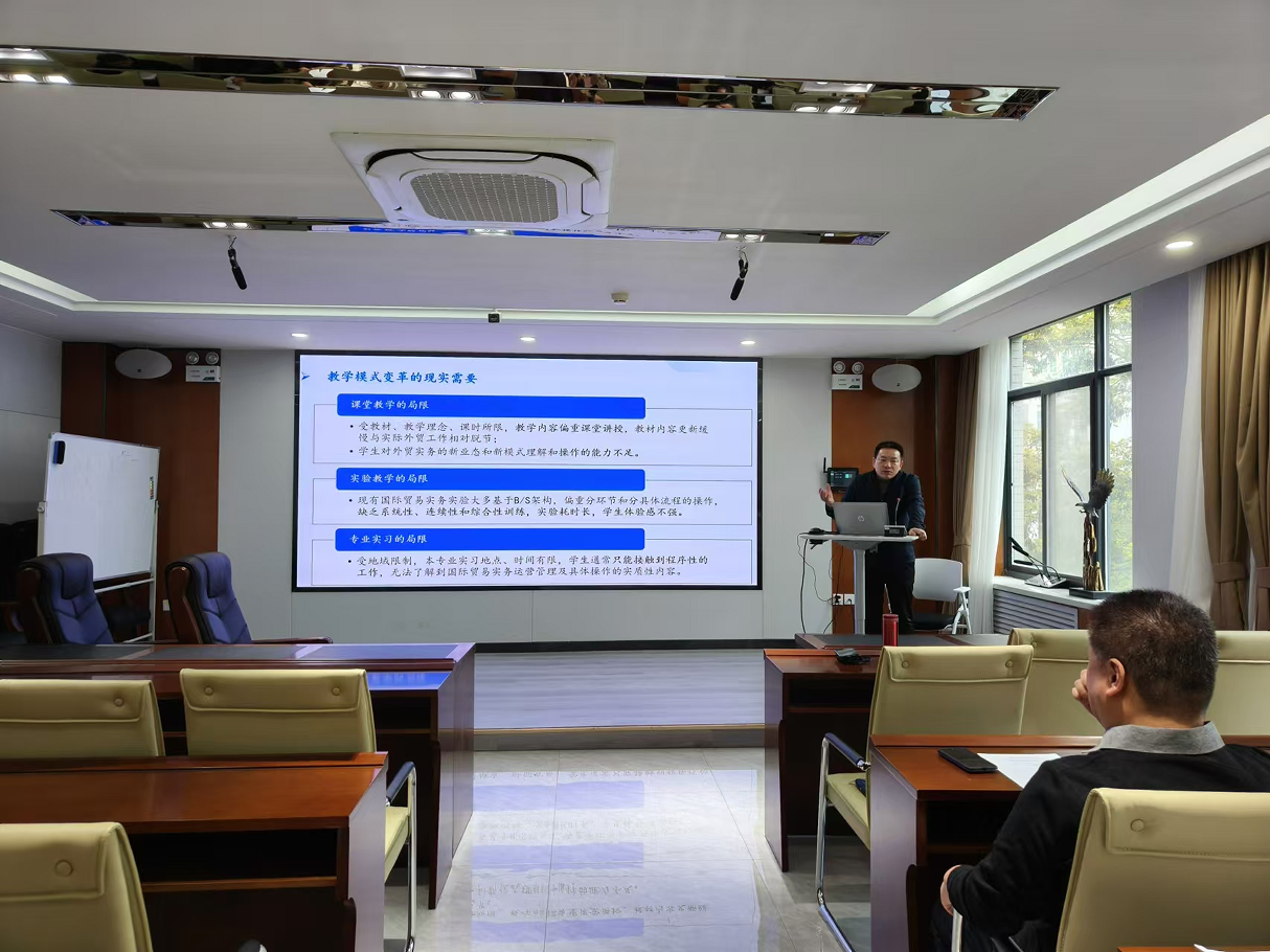陈开军老师介绍了近年来学院本科生参加学科竞赛的基本情况和成效。他指出,学院深度挖掘教育教学与学科竞赛之间的相互促进机制,大力培养学生的协作创新精神和实践能力,人才培养质量显著提升。2021年以来,学院本科生获得省级及以上奖励⼈次累计超过620人次,其中获得国家级奖励148人次,省级⼀等奖及以上的奖项⼈次超过280人次,获奖总项目数198项,其中国家级奖励56项,省级⼀等奖以上奖励97项。他详细介绍了全国高校商业精英挑战赛的赛道构成及在国际经济与贸易专业人才培养中的重要作用,重点分享了近两年指导学生获得国际贸易业务模拟赛道一、二等奖的经验,分析了该竞赛中商业策划书撰写、新产品发布及商贸配对谈判的关键得分点。通过生动案例,展示了如何让学生将课本知识转化为实践技能,提升综合素质。