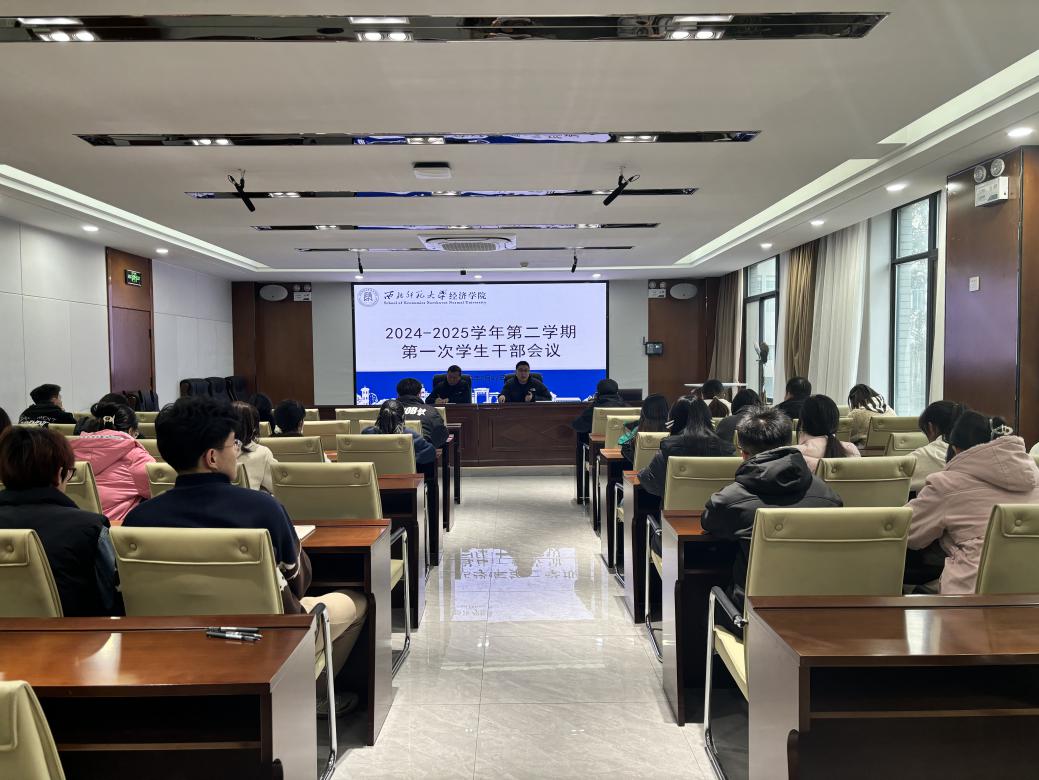 春日启新程,奋斗正当时。为保障新学期学生工作有序开展,提升学生管理与服务质量,筑牢校园安全防线,确保新学期各项工作平稳有序开展,2月27日,8797威尼斯老品牌在学院313会议室召开2025年春季学期第一次学生干部会议。学院党委副书记张伟、团委书记张宏斌以及各班级班长、学习委员和生活委员参加会议。
