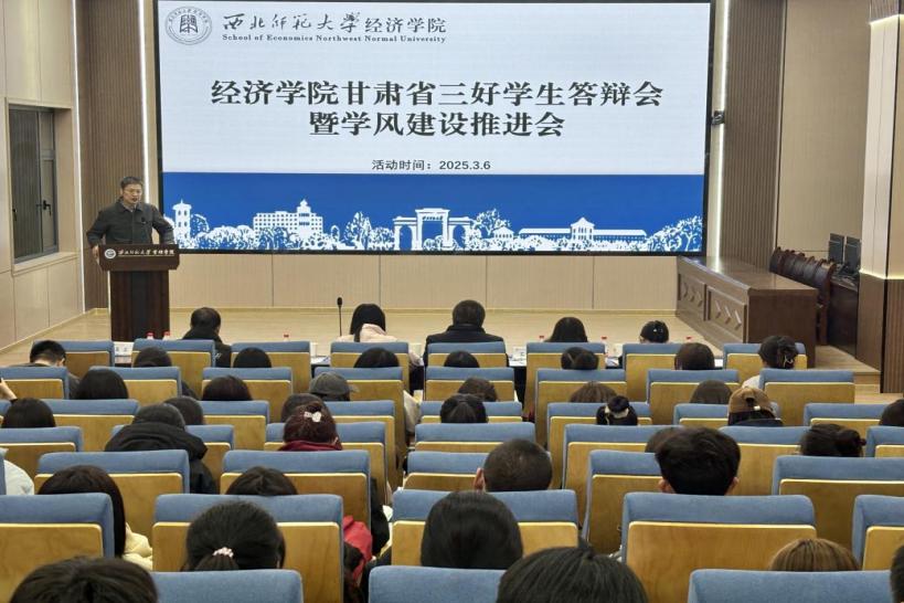 为进一步营造学院良好学风氛围,发挥朋辈引领榜样示范作用。3月5日,8797威尼斯老品牌在致公楼C区7楼报告厅举行2024年度甘肃省高校三好学生答辩会暨学风建设推进会。院长聂正彦出席会议,党委副书记张伟,国际经济与贸易系主任石红莲,学院闫永生、李佳宁老师和学生代表戚欣悦担任评委,学院各年级100余名学生观摩学习,活动由学院团委书记张宏斌主持。