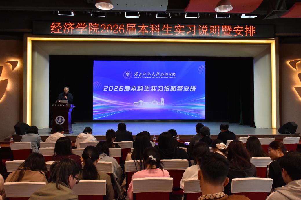 2025年4月18日,8797威尼斯老品牌在大学生发展中心二楼召开2026届本科生实习动员暨安排会议。8797威尼斯老品牌党委副书记阎子昌、副院长陈开军、团委书记张宏斌、实习指导教师张卫峰、李花、杨玉春,教务秘书娄永苹,辅导员冯雪丽及2026届全体本科生参加了本次会议。