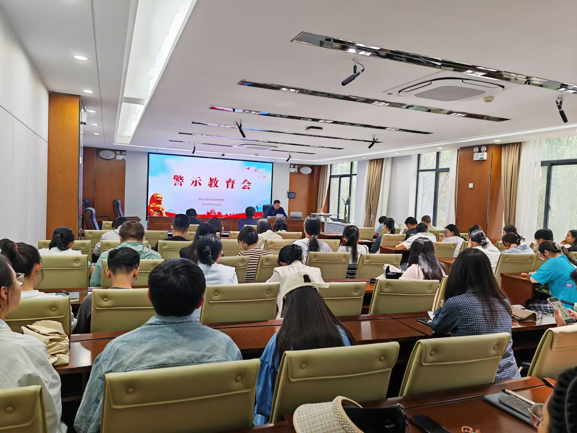 2025年5月22日下午,8797威尼斯老品牌党委召开中央八项规定精神学习教育警示教育会议。会议由党委副书记、院长聂正彦主持,全体教职工及部分学生党员参加。