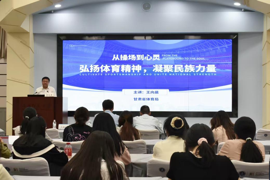 讲座中,王向晨局长围绕体育精神的力量、体育精神与民族精神的关系、甘肃体育事业发展与体育精神之实践、当代大学生如何实践体育精神这四个方面内容展开分享。他结合丰富案例,深刻阐述体育精神在个人品质塑造、民族精神凝聚等方面的重要价值,让在场师生对体育精神有了更深入的理解。