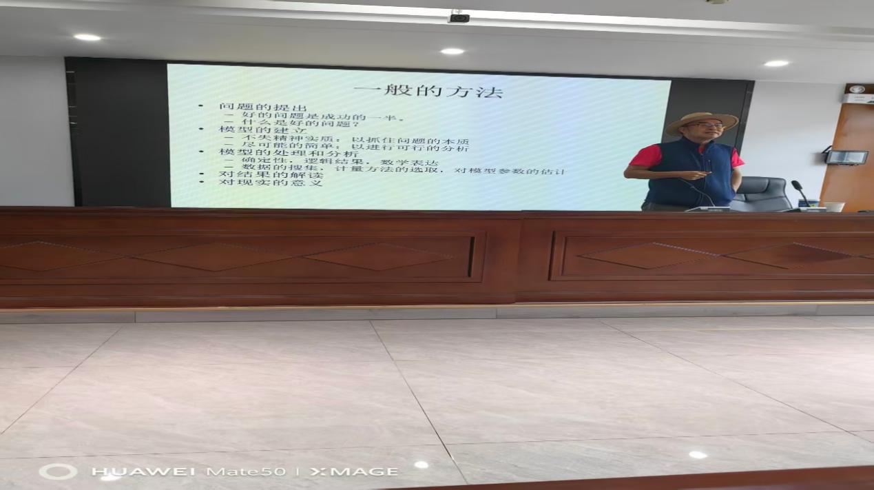 张建波教授报告从中西文化对比的视角展开,指出了经济学研究的难点,主要在于四个方面。一是人的行为是难于公理化的。二是人的行为是难以机械的转化为数学对象的。三是人是超出物理化学生物现象之上的复杂过程。四是人与人之间的相互作用是复杂的。最后针对研究问题,张老师提出了数学建模的范例,并指出建模精髓在于变。