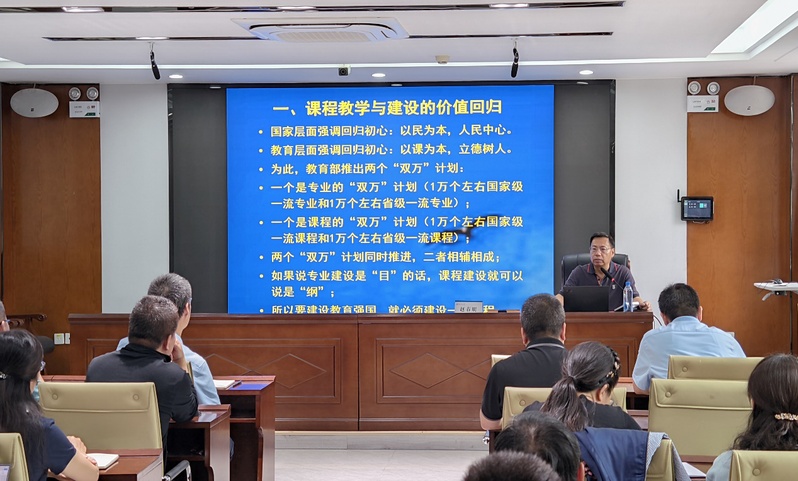 赵春明教授的讲座从课程教学与建设价值回归、处理好课程建设中的七对关系、课程教学与建设的个人实践与体会等四个方面展开。他首先从课程教学与建设的价值回归角度出发,阐明了课程教学“以课为本,立德树人”的精神内涵,认为新时代以来,高校越来越重视课程建设,通过课程建设和教学质量提升可以有效支撑高水平科研,强化学科建设,提高人才培养质量;其次,他围绕课程教学与建设提出了处理好“师德与师能”“经师与人师”“研究与教学”等五大辩证关系,认为做好课程教学与建设既要注重师资师能,提升课程“两性一度”,也要注重师德师风,提升以德育人能力;再次,他围绕自己国家级线上一流课程、国家级课程思政示范课程等课程建设实践,认为课程建设要“用心、用情、用力”,做好课程建设规划,注重教学方法研究,主动拥抱数智赋能,实现教学科研双促双进;最后,他结合从教三十多年的经历,谈了课程建设与教学的几点体会,认为教师要对教育事业有热爱之心,在教学过程中关爱学生、言传身教,只要倾心付出,终会有所收获。