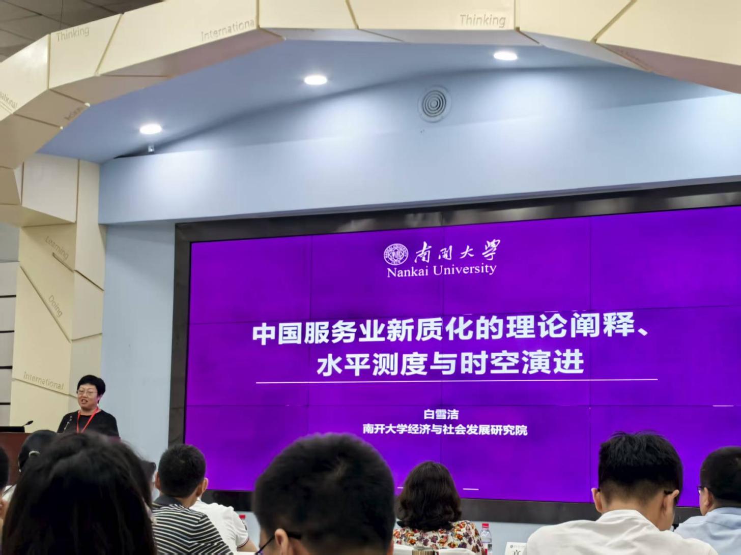 白雪洁教授作了“中国服务业新质化的理论阐释、水平测度与时空演进”的报告。她围绕中国服务业高质量发展,立足服务业发展的现实问题,基于服务业新质化的理论阐释、水平测度与特征分析,预测了服务业新质化转型的演进趋势。